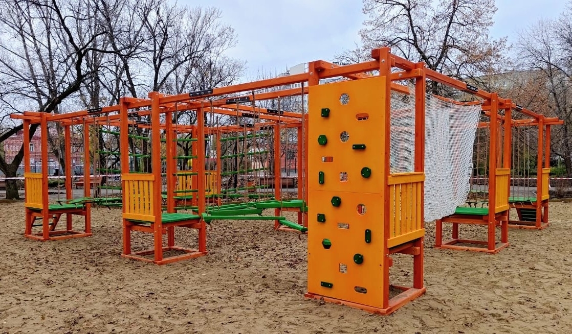 Команда Outdoor-team в ноябре 2025 года построила быстровозводимый веревочный парк в Саратове. Такой парк имеет 13 этапов, 1 уровень и 1 трассу, не требует страховки. Комплектацию по желанию заказчика дополнили следующие элементы: вертикальный и наклонный скалодромы, веревочная лестница. Монтаж занял всего 2 дня. Строительство проходило в рамках благоустройства общественной территории «Детский парк». Подробнее смотрите информацию в нашем портфолио.