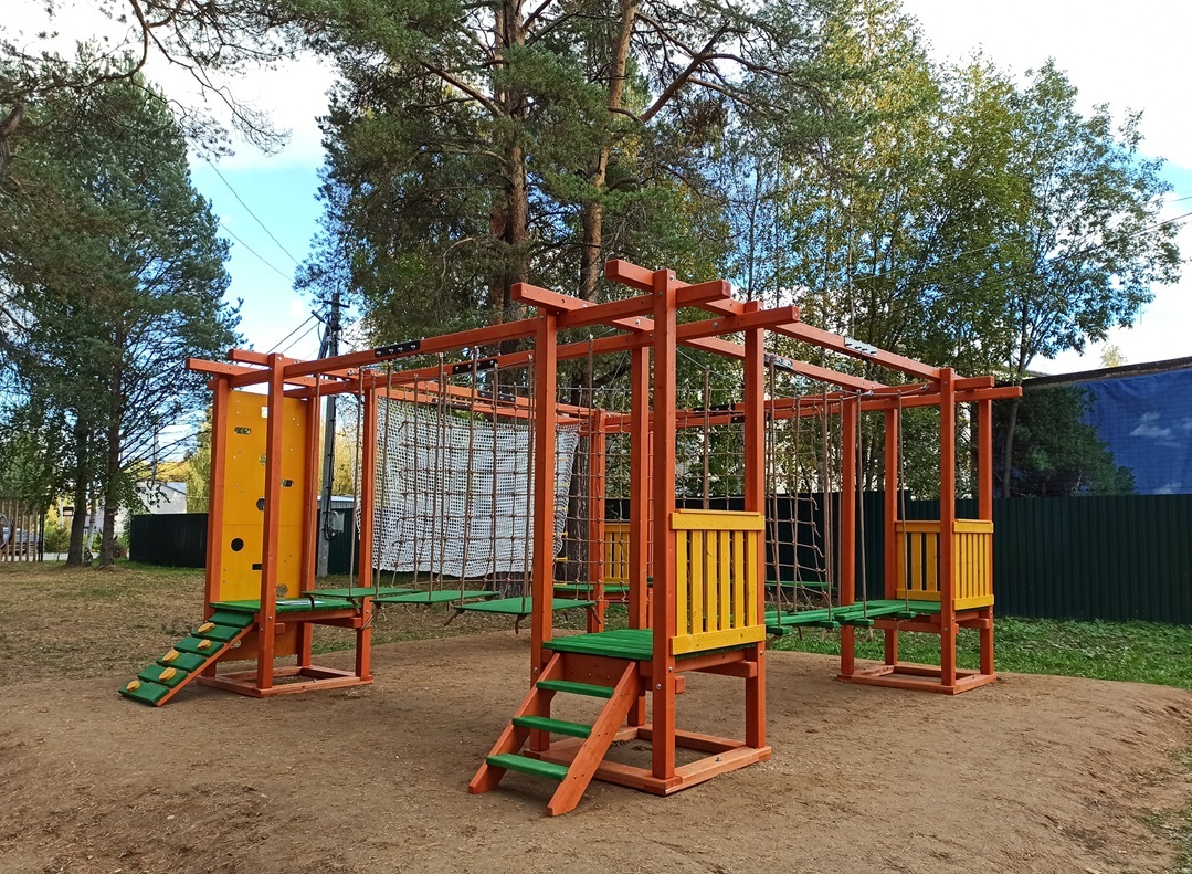 В сентябре 2025 года команда Outdoor-team смонтировала детский веревочный парк на 5 этапов в селе Тарногский Городок Вологодской области. Такой парк имеет 1 уровень и 1 трассу, подходит для детей от 3-х лет. По желанию заказчика в комплектацию были добавлены вертикальный и наклонный скалодромы, веревочная лестница. Монтаж занял всего 1 день. Подробнее о веревочном парке смотрите информацию в нашем портфолио.